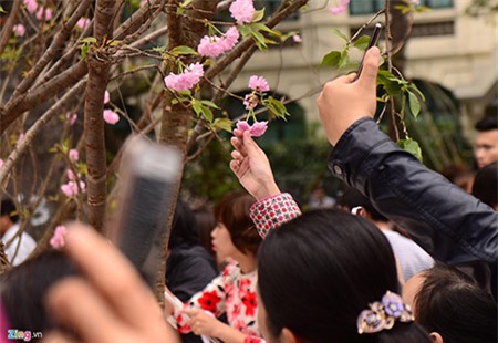 đối không chạm vào hoa anh đào trưng bày, tuy nhiên nhiều người vẫn