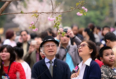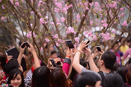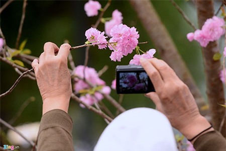 Khách tham quan thi nhau chụp hình loài hoa nổi tiếng thế giới của đất nước mặt trời mọc. |