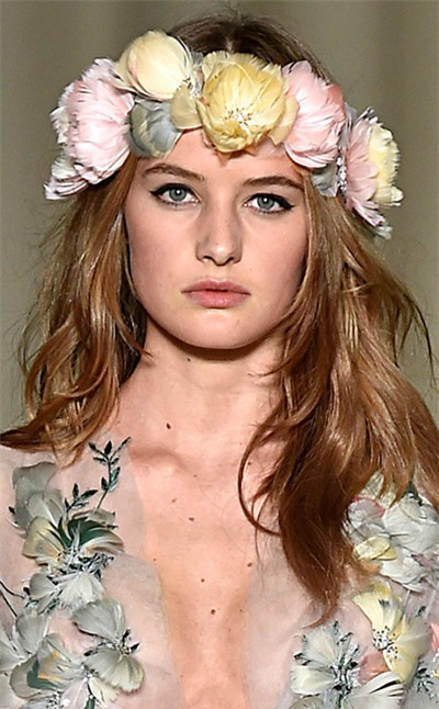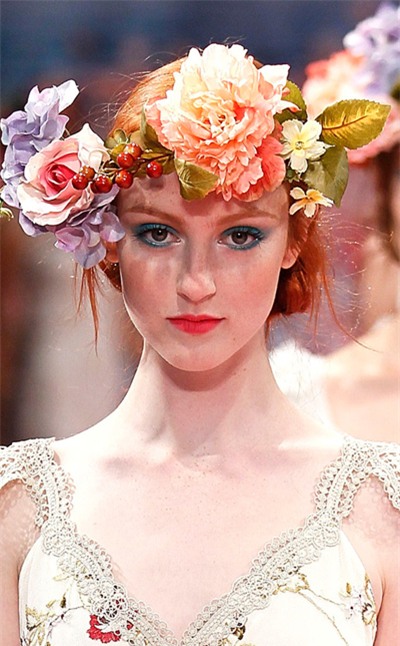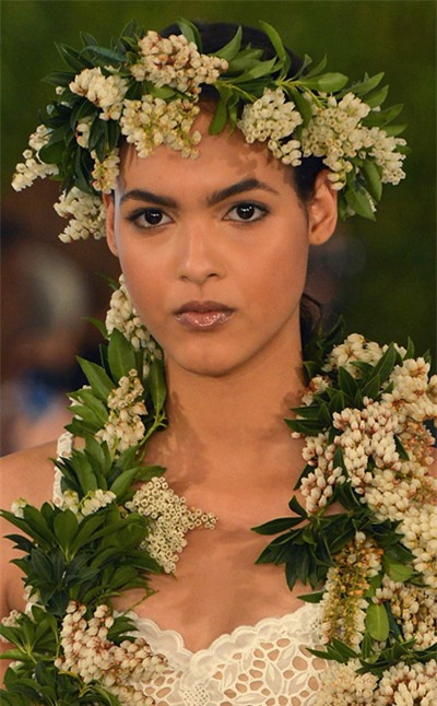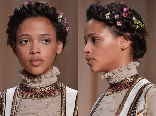 Những chùm hoa được kết từ tóc tỏa xuống vai mang một vẻ đẹp đầy tự nhiên