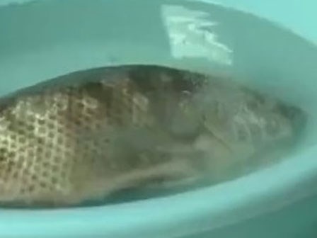 Con cá gần chết sau khi được thả ít bột vào đã sống lại. Người ta cho rằng đó là một loại hóa chất để làm sống cá của Trung Quốc khiến người dân vô cùng hoang mang.