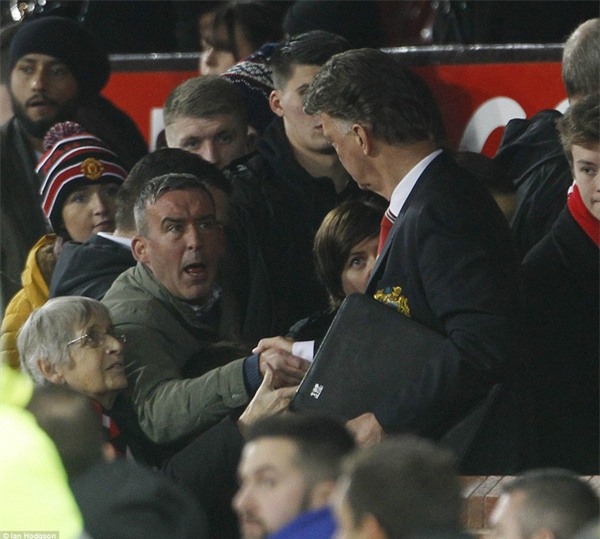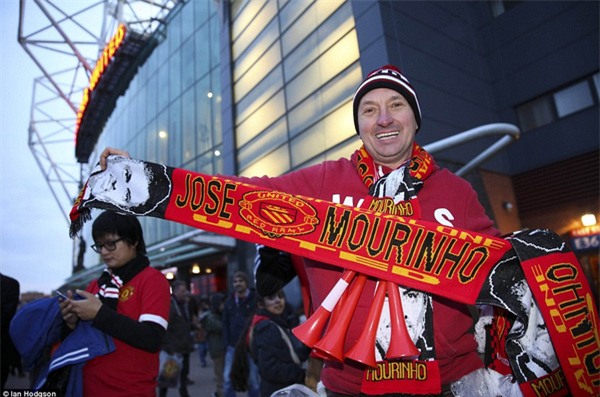 Trước trận đấu các CĐV Man Utd mang băng rôn có tên HLV Mourinho đến sân Old Trafford với mong muốn nhà cầm quân vừa bị Chelsea sa thải sớm đến dẫn dắt Quỷ đỏ thay Van Gaal.