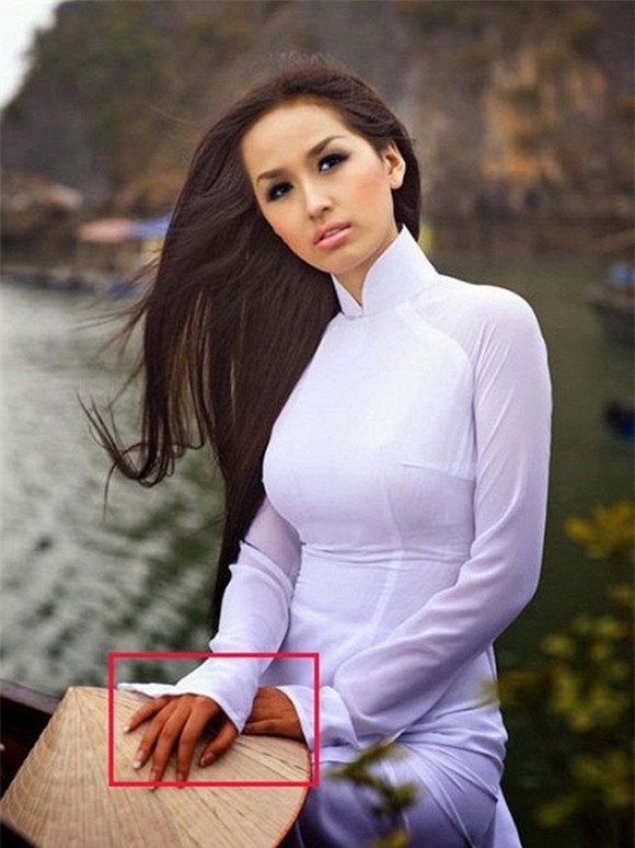 Bàn tay "ma quái" do sơ suất khi chỉnh ảnh khiến nhiều người xem giật mình.