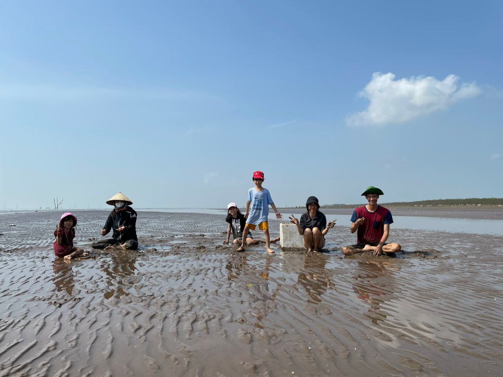 Trẻ nhỏ trải nghiệm cuộc sống làng quê ven biển cùng cha mẹ (Ảnh: Phan Hằng).