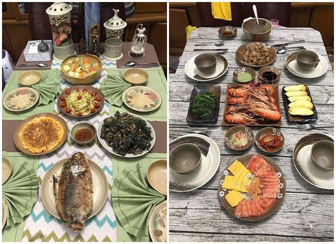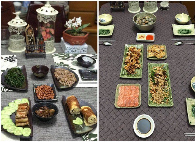 Những mâm cơm tươm tất do chính tay chị nấu khiến nhiều người bất ngờ.