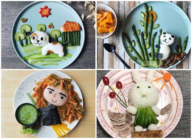 Hàng ngày, chị cứ hình dung sẵn bộ gốm cũng như các đĩa ăn của các con từ buổi sáng để chiều bắt đầu vào nấu nướng, trang trí đĩa cơm cho con. Vì trong tủ lạnh có đầy đủ nguyên liệu như: cà chua bi, dưa chuột, cà rốt, rong biển, cộng thêm đồ ăn chính của mỗi bữa ăn nên chị không mất nhiều thời gian để bày biện. Các con chị thường ăn lúc 6h để còn học bài nên trong lúc các con ăn chị lại chuẩn bị nấu nướng bày biện bàn ăn đợi chồng về. Chồng chị thường đi làm về muộn nên 7h-7h30, vợ chồng chị mới ăn tối.
