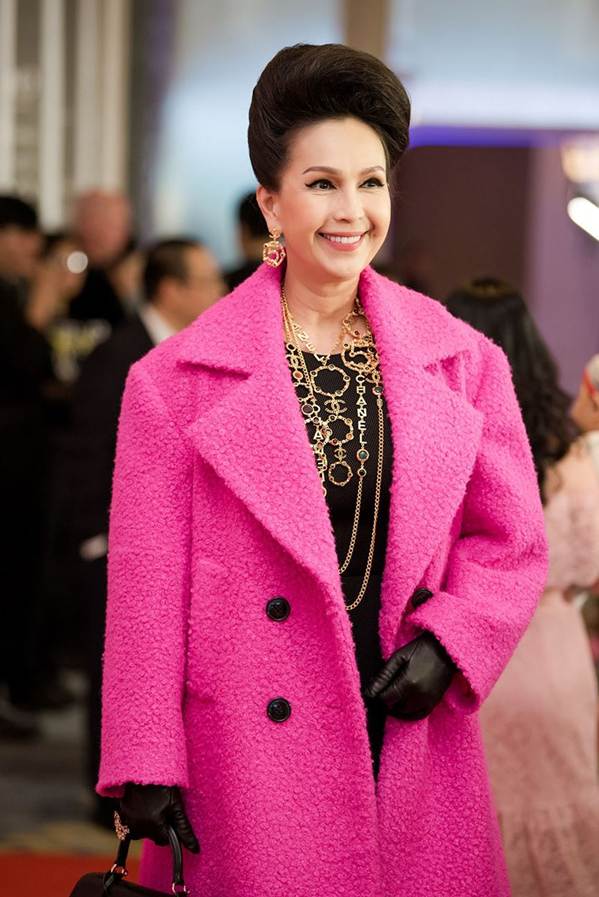 "Nữ hoàng ảnh lịch' Diễm My nổi bật với chiếc áo khoác màu hồng neon.