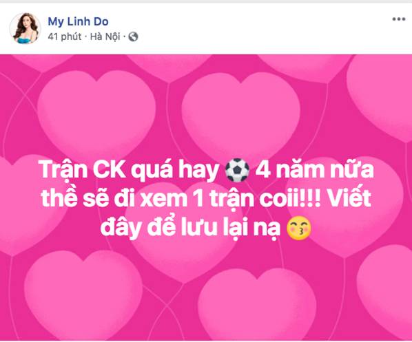 Đỗ Mỹ Linh viết lại status để làm bằng chứng cho chuyến đi xem chung kết vào mùa giải sau.