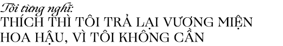 Hồi xưa khi chưa làm Hoa hậu, tôi từng tuyên bố rằng đi thi chơi cho vui. Sau khi đăng quang, thích thì tôi trả lại vương miện thôi, vì tôi không cần. Tôi là cô gái sinh ra và lớn lên tại Sài Gòn. Tôi được ba mẹ dạy dỗ, cho ăn học thành người rồi thậm chí còn có điều kiện đi nước ngoài định cư nữa, tôi không cần thi Hoa hậu để đổi đời. Tôi từng nghĩ mình chẳng cần sợ bất cứ điều gì.