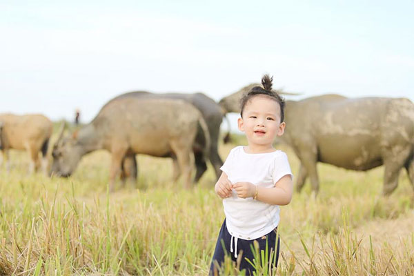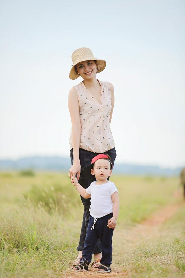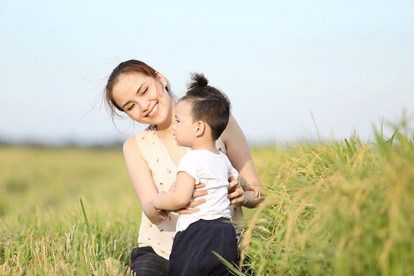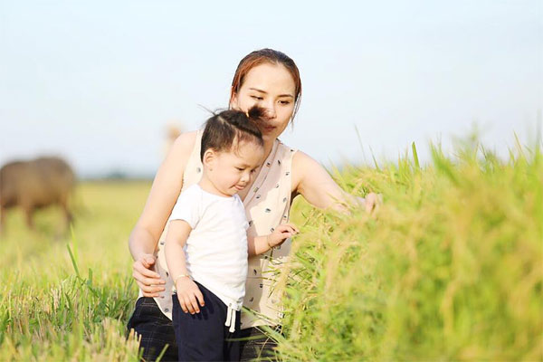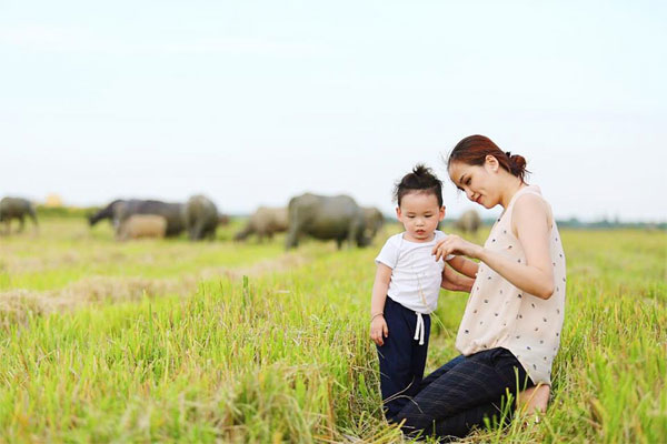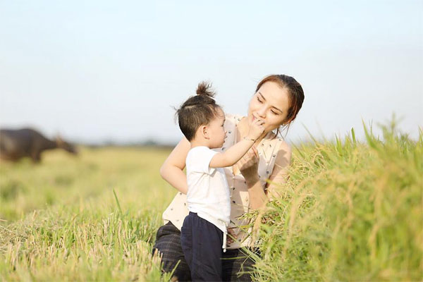 Hình ảnh hai mẹ con Diễm Hương nắm tay nhau trên cánh đồng lúa chín người hâm mộ ngây ngất. Hoa hậu tự hào chia sẻ: “Có thể mẹ không phải là bà mẹ tốt nhất, giàu có và giỏi giang. Nhưng mẹ sẽ là người yêu thương con trên mỗi đoạn đường đời con đi. Theo mẹ, mẹ sẽ dắt tay con nếm lá lúa cùng con, và vượt qua nỗi sợ con trâu”.