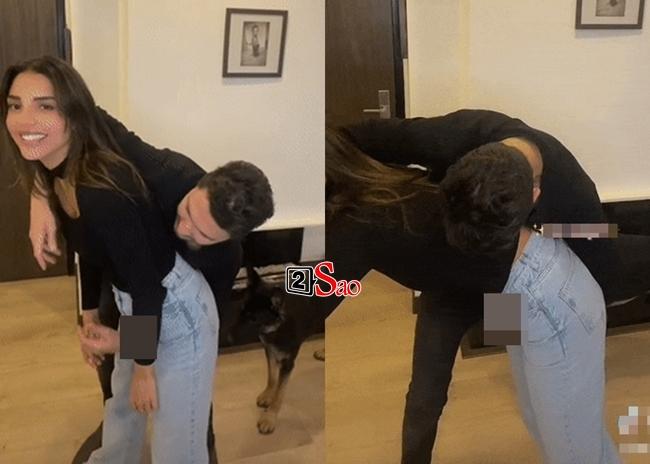 Trong clip, mỹ nhân Latinh cùng bạn trai thực hiện thử thách nhấc bổng đối phương bằng cách luồn tay xuống "vùng kín", sau đó dùng tay giữ chặt "chỗ ấy" để nâng người kia lên.