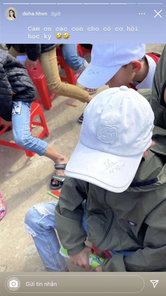 Trước sự ủng hộ nhiệt tình, Đỗ Hà đã ngồi ký rất nhiều lên cả giấy và mũ tặng các em. Cô nàng cũng hài hước thừa nhận bản thân viết chữ... khá xấu nên hi vọng các em học sinh sẽ không thấy thất vọng khi nhìn món quà.