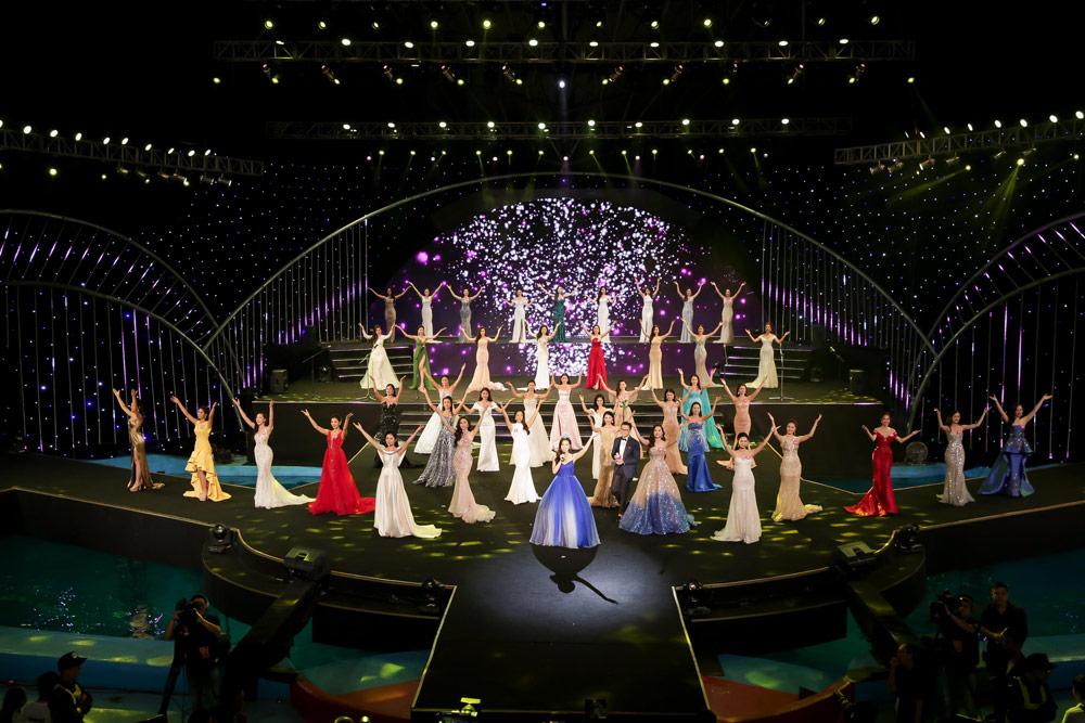 Nàng Hoa hậu nổi bật trên sân khấu cùng với 44 thí sinh Hoa hậu Việt Nam 2018.