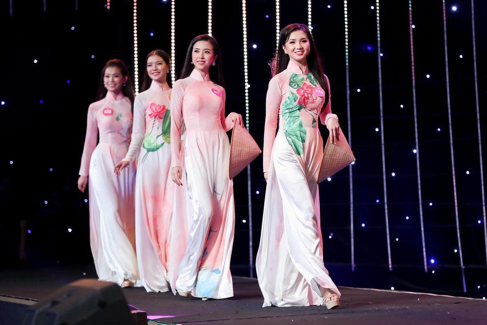 Những tà áo dài tông màu hồng ngọt ngào giúp các người đẹp thêm tự tin sải bước.