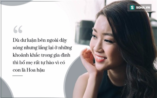 Nhưng may mắn là thời điểm đó bố mẹ, gia đình luôn ở bên quan tâm, động viên tôi. Dù dư luận bên ngoài dậy sóng nhưng lắng lại ở những khoảnh khắc trong gia đình thì bố mẹ rất tự hào vì có con là Hoa hậu.