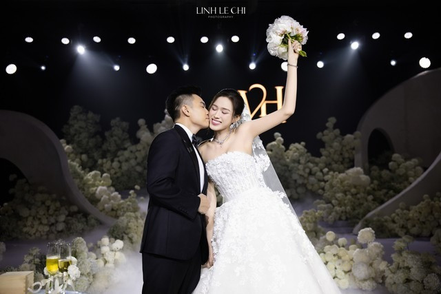 Đám cưới của cặp đôi diễn ra vô cùng trọn vẹn với sự góp mặt của nhiều sao Việt và dàn Hoa, Á hậu đình đám trong đó có Hoa hậu Đoàn Thiên Ân.
