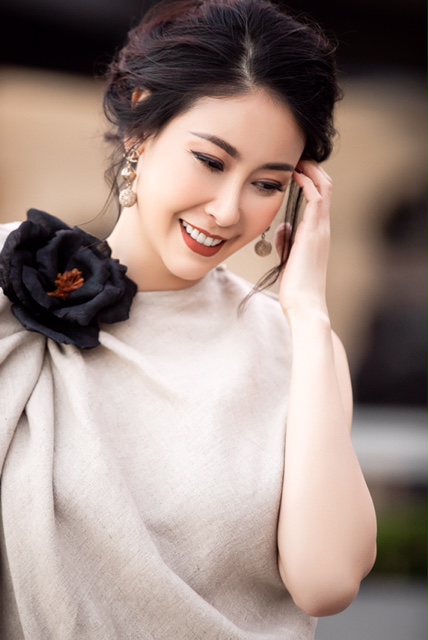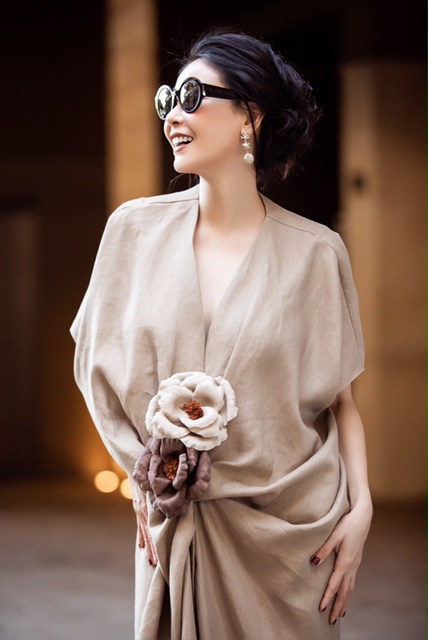 Hoa hậu Hà Kiều Anh mang đến vẻ nữ tính, ngọt ngào trong chiếc đầm rộng dáng dài có tông màu kem mát mắt