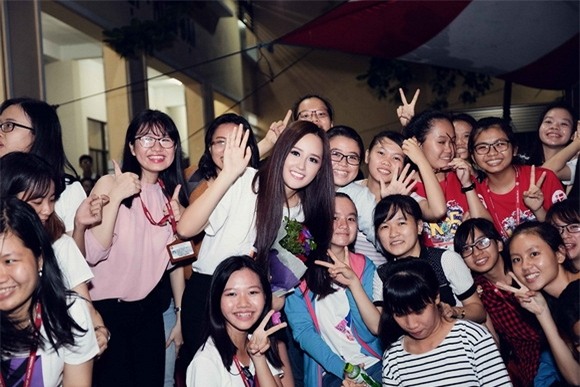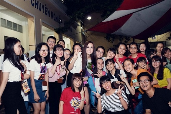 Mai Phương Thúy tham gia sự kiện với vai trò Đại sứ. Ngay khi xuất hiện, cô nàng Hoa hậu bị rừng fans vây kín xin chụp hình lưu niệm. Diện chân váy tone đen và áo phông trắng giản dị, Hoa hậu Việt Nam 2006 vẫn vô cùng rạng rỡ, xinh đẹp và cuốn hút.