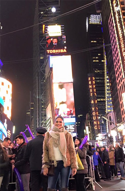 Hoa hậu Hoàn vũ 2015 khoe ảnh đón năm mới giữa quảng trường Thời Đại |
