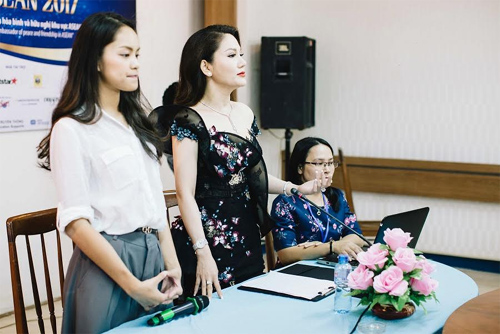 Trong vai trò cố vấn cuộc thi Hoa Hậu ASEAN 2017, Hoa hậu Doanh Nhân Việt Nam Thế Giới 2017 Xuân Hương chia sẻ bí quyết chăm da giữ dáng để thí sinh tỏa sáng trong đêm chung kết tại TP. Tuy Hòa ngày 1/7/2017.