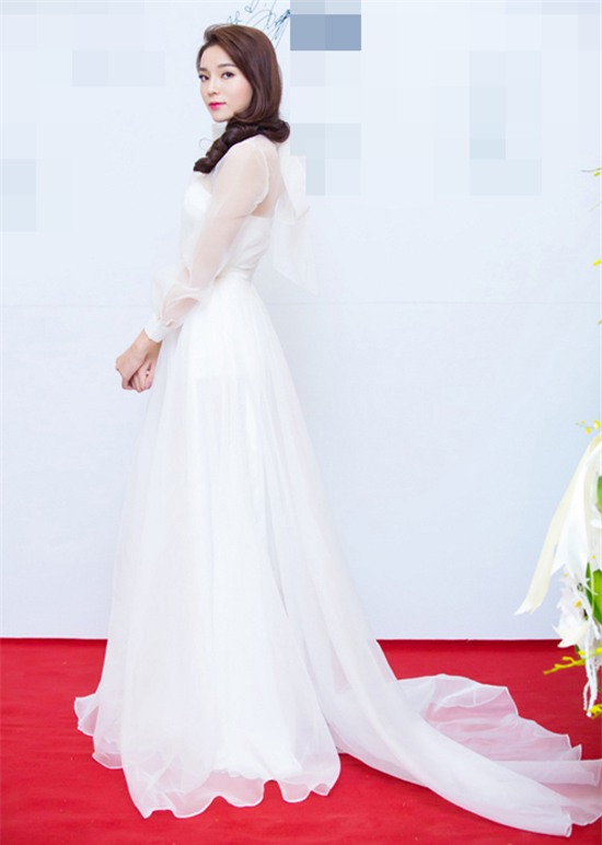Cô luôn khéo léo lựa chọn những bộ cánh thướt tha, lộng lẫy để tôn lên ưu điểm của chiều cao, thân hình nuột nà, eo thon thả, bờ vai mềm mại...