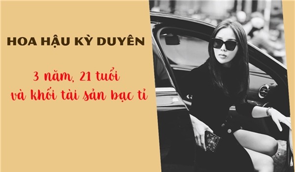Đăng quang Hoa hậu Việt Nam 2014 khi mới 19 tuổi, sau 3 năm dấn thân vào làng giải trí, Kỳ Duyên từ một cô nữ sinh đã mau chóng trở thành mỹ nhân sống trong nhung lụa với cuộc sống khá giả, khối tài sản giá trị mà ai cũng phải dành sự ngưỡng mộ đặc biệt. Đến nay, ở tuổi 21, Hoa hậu Kỳ Duyên đã có trong tay bộ sưu tập hàng hiệu tiền tỉ, 2 xe sang với tổng giá trị tới 10 tỉ đồng và nhà riêng tại TP HCM cùng cát-sê dự sự kiện, đại diện quảng cáo cao ngất ngưởng.