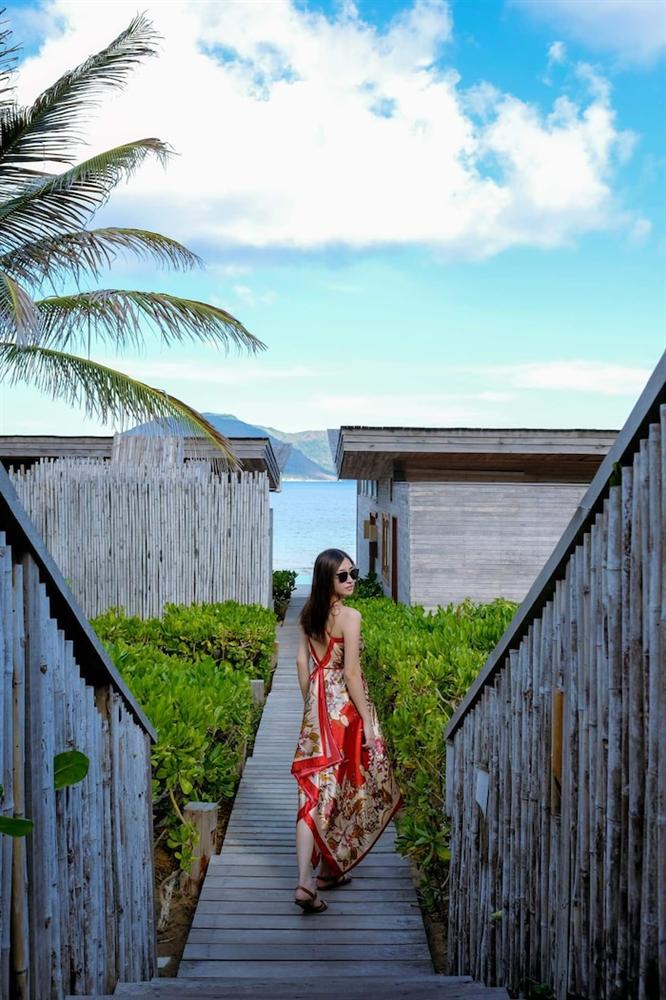Thế nhưng mới đây, nàng Hậu đã khiến nhiều người ngạc nhiên khi thả dáng trong chiếc váy hai dây gợi cảm, khoe khéo thềm ngực nõn nà. Với bối cảnh dạo chơi trên biển Côn Đảo, trang phục quả thật rất hợp dáng, hợp tình.
