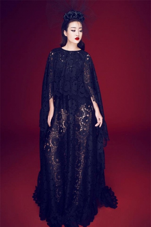 Sắc đen trầm mặc đã dung hòa độ mỏng của ren tạo nên thiết kế thanh tao, nhã nhặn. Kiểu trang điểm sắc sảo càng giúp Hoa hậu Việt Nam 2016 cuốn hút đến khó thể rời mắt.