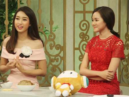 Hoa hậu Đỗ Mỹ Linh trò chuyện trong chương trình Bữa trưa vui vẻ. Ảnh: BTVV. |