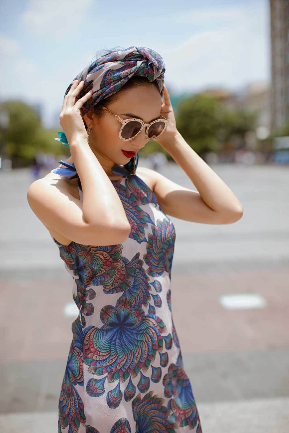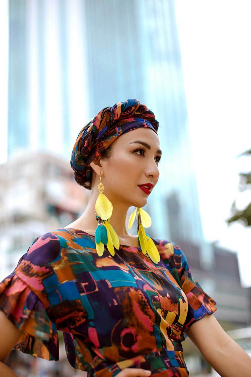 Hoa hậu Du lịch Việt Nam 2008 luôn biết cách “F5” bản thân với những trang phục khác nhau. Trong bộ ảnh lần này, người đẹp sử dụng những chiếc khăn turban cá tính mix-match cùng cặp kính sành điệu tạo nên hình ảnh sang trọng của một cô nàng thành thị.