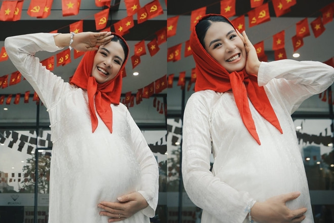 Cô và ông xã Phú Đạt diện trang phục đời thường, lựa chọn một không gian chụp ảnh vô cùng giản dị, gần gũi – là ngôi nhà nơi cô đang chuẩn bị chào đón thiên thần nhỏ của mình.