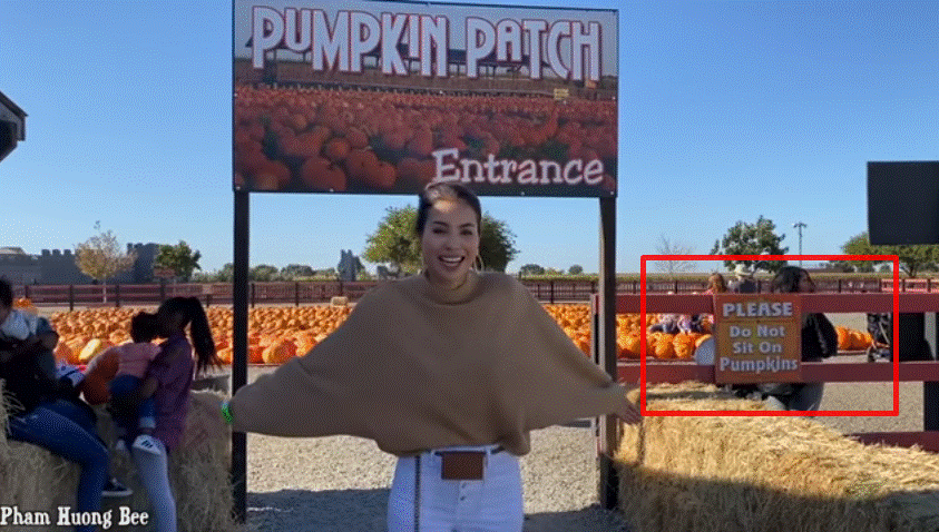 Phạm Hương luôn chăm chút cho kênh Youtube cá nhân của mình. Hết hướng dẫn làm đẹp, hoa hậu lại chuyển sang review địa điểm tham quan. Lần này là vựa bí đỏ lớn nhất trong năm của người dân nước Mỹ, cũng là dịp đặc biệt chào đón lễ Halloween sắp tới... Nhưng mọi thứ sẽ thật hoàn hảo nếu Phạm Hương nhìn thấy biển báo cấm ngồi lên bí ngô, thì sẽ không xảy ra tranh cãi đến vậy.