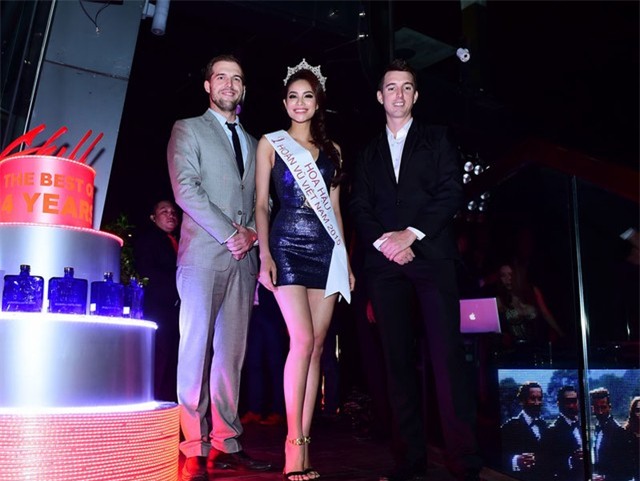 Tân Hoa hậu Hoàn vũ Việt Nam thu hút mọi ánh nhìn khi xuất hiện tại một sự kiện của showbiz Việt. Cô diện váy bó sát gợi cảm và liên tục cười rạng rỡ.