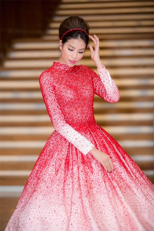 Được biết, Phạm Hương diện váy của NTK Linh San, chiếc váy dường như được thực hiện riêng cho Hoa hậu gốc Hải Phòng để phù hợp với vóc dáng và số đo của Phạm Hương.