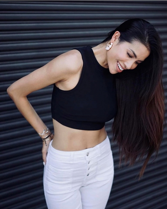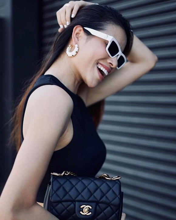 Khi ở Mỹ, Hoa hậu Hoàn vũ Phạm Hương thay đổi phong cách theo hướng 'Tây hóa'. Người đẹp tự tin diện những bộ đồ bó sát khoe trọn số đo ba vòng.