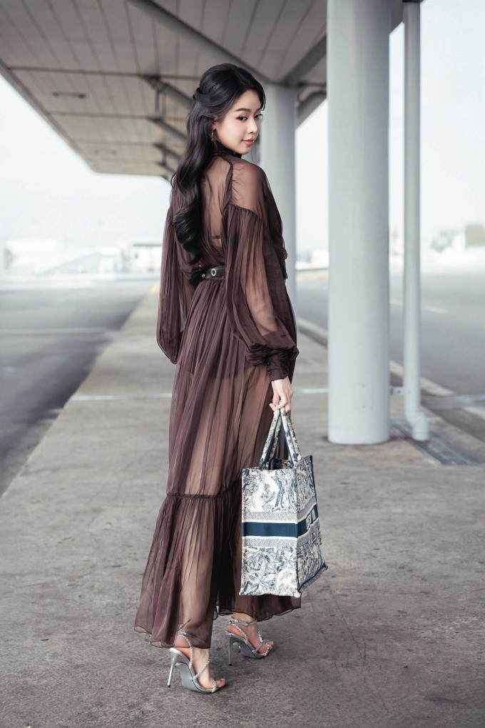 Hoa hậu Thanh Thuỷ diện đầm maxi siêu mỏng, để lộ nội y. Trang phục gợi cảm của Thanh Thủy nhận nhiều ý kiến trái chiều, khác biệt phong cách thanh lịch, trẻ trung, thường thấy và đặc biệt không gian diện trang phục là sân bay.