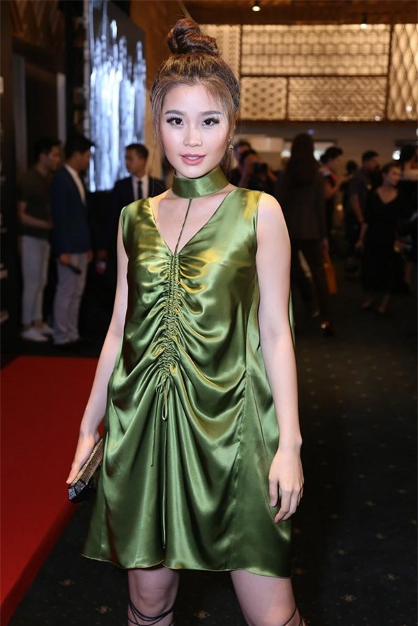 Á hậu quốc tế Thúy Vân mặc váy xẻ đùi gợi cảm.