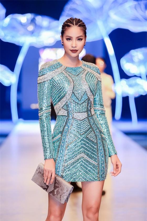 Hoa hậu hoàn vũ Phạm Hương diện váy lấp lánh bó sát khoe đường cong gợi cảm.
