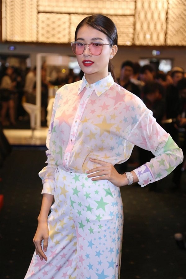 Á hậu hoàn vũ Lệ Hằng thanh lịch như một cô nàng công sở với váy họa tiết ngôi sao.