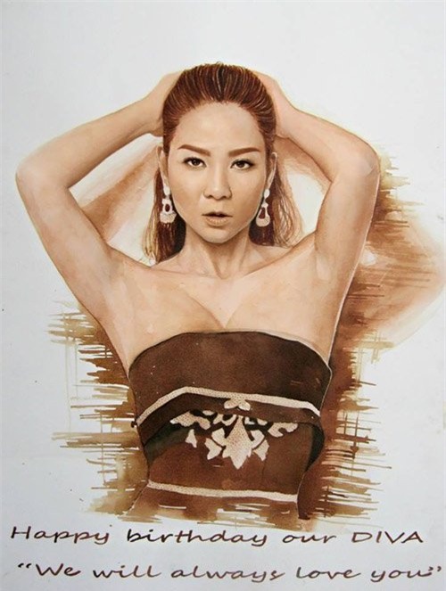 Mỹ Tâm hiện lên sống động trong bức tranh vẽ bằng cà phê của 9x Tiền Giang
