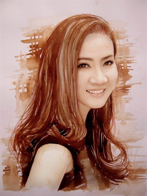 Bức tranh phác họa chân dung ca sĩ Đông Nhi được Quốc Vẹn vẽ bằng cà phê