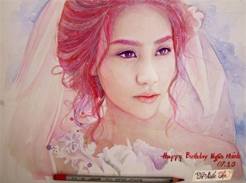 Quốc Vẹn cũng từng gửi đến diễn viên Ngân Khánh một bức tranh truyền thần tuyệt đẹp trong ngày sinh nhật