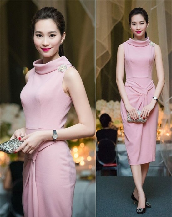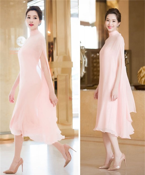 Khó có ngôi sao nào có thể "vượt mặt" được nhan sắc Hoa hậu Thu Thảo khi diện những bộ đồ gam màu hồng pastel.