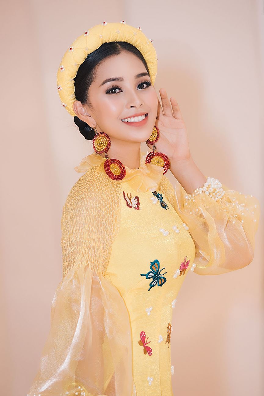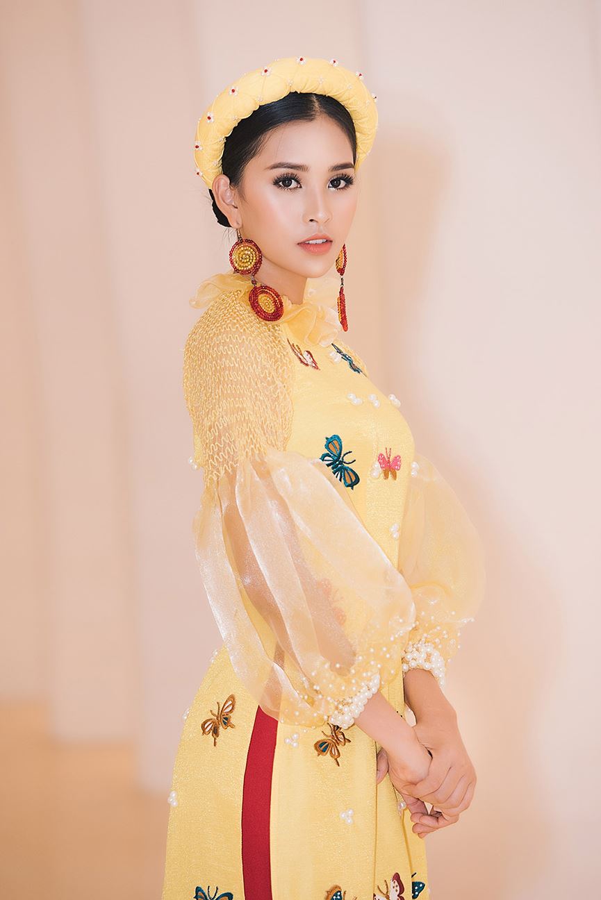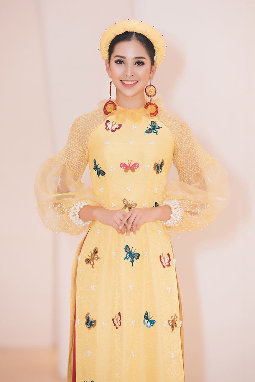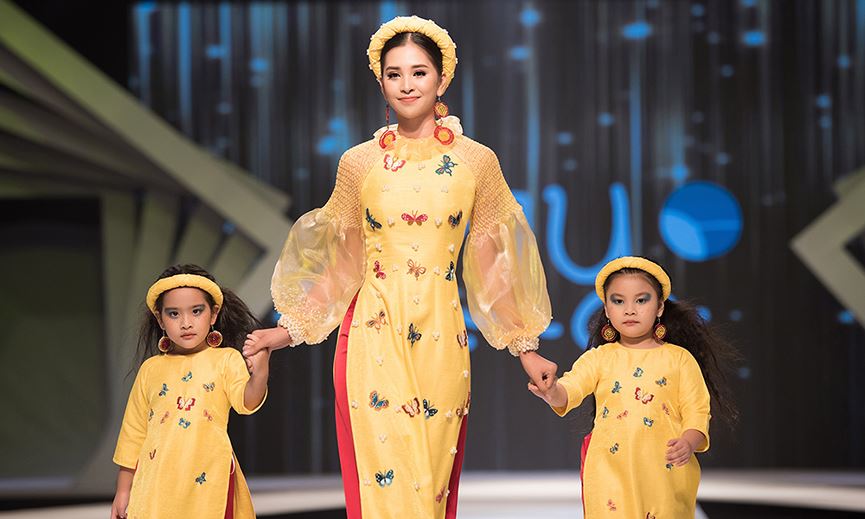 Trình diễn bộ sưu tập áo dài truyền thống được cách tân với những hoạ tiết lạ mắt, Hoa hậu Tiểu Vy trở thành tâm điểm của sàn runway lần này.