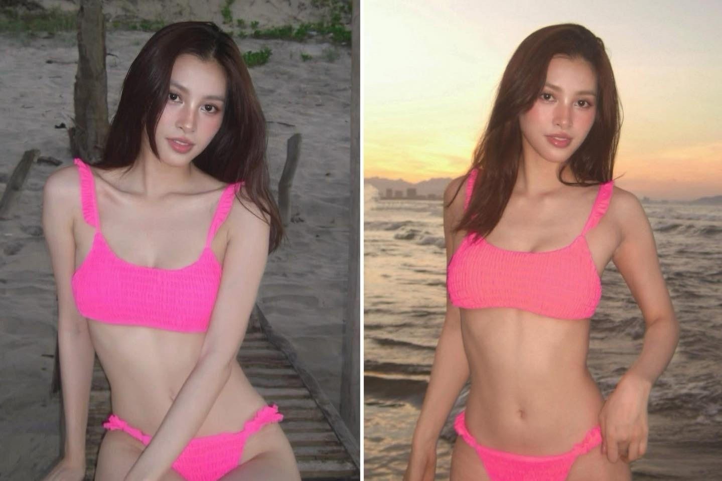 Nàng hậu vui vẻ khoe ngũ quan cân đối, đôi mắt hai mí to tròn, sống mũi cao và biểu cảm rạng rỡ. Nhưng ấn tượng nhất là Tiểu Vy có làn da căng bóng mịn màng, không hề có dấu hiệu của mụn. Ai cũng biết công việc của Tiểu Vy cần trang điểm thường xuyên, rất ảnh hưởng đến làn da nên càng tò mò nàng hậu làm cách nào để giữ được nước da đẹp như mơ.