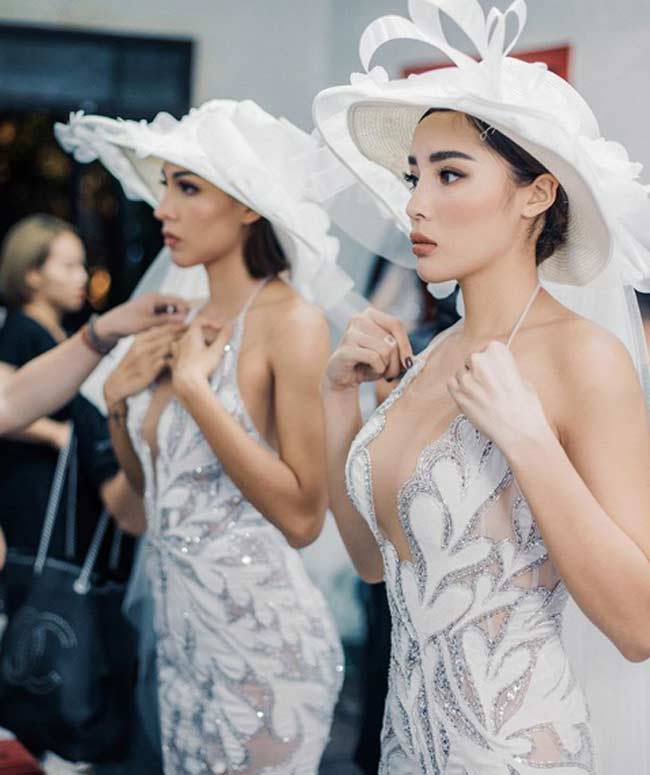 Có thể thấy trong cùng mẫu váy tại một sự kiện thời trang, Kỳ Duyên và Minh Triệu lên dáng váy khác hẳn nhau. Lý do là bởi vòng 1 sau khi sửa sang của Kỳ Duyên quá lớn.