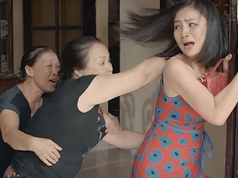 Cảnh San (Diệu Hương) bị mẹ chồng cầm chổi đánh túi bụi trong tập 7 "Hoa hồng trên ngực trái" khiến khán giả phẫn nộ.