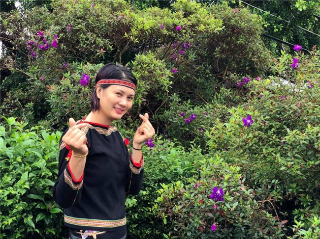 Hoa khôi của làng bóng chuyền nữ Việt Nam dành nhiều thời gian thăm thú những địa danh nổi tiếng của Đắk Lắk. Kim Huệ mặc bộ trang phục truyền thống của người Tây Nguyên, hóa thân thành thiếu nữ niền sơn cước.