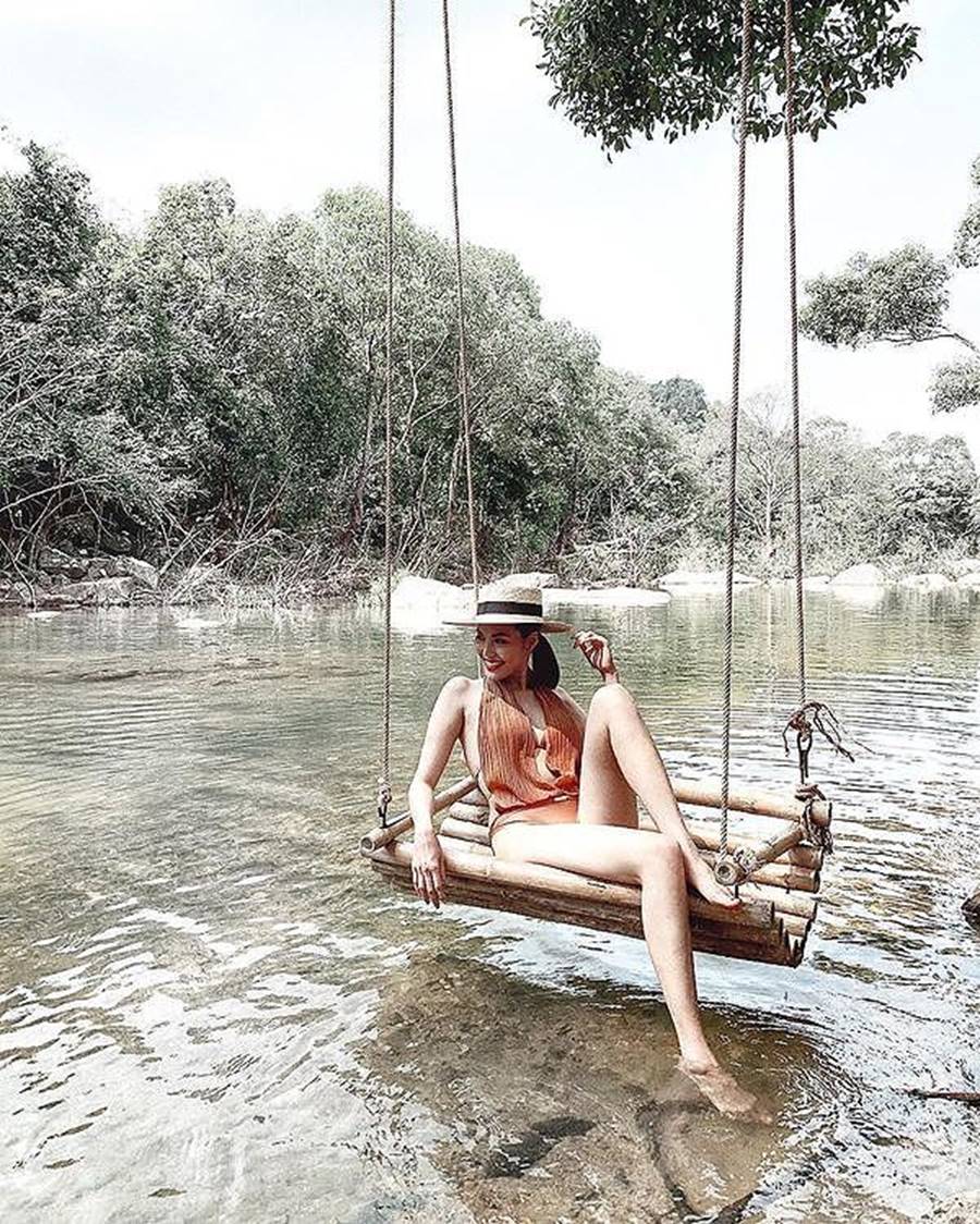 Hoa khôi Áo dài Lan Khuê chăm chỉ khoe thân hình quyến rũ với bikini dù đang mang bầu ở những tháng đầu.