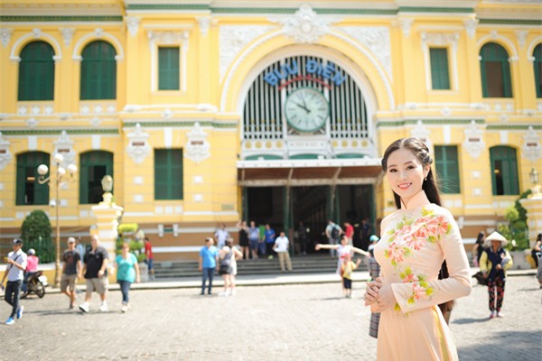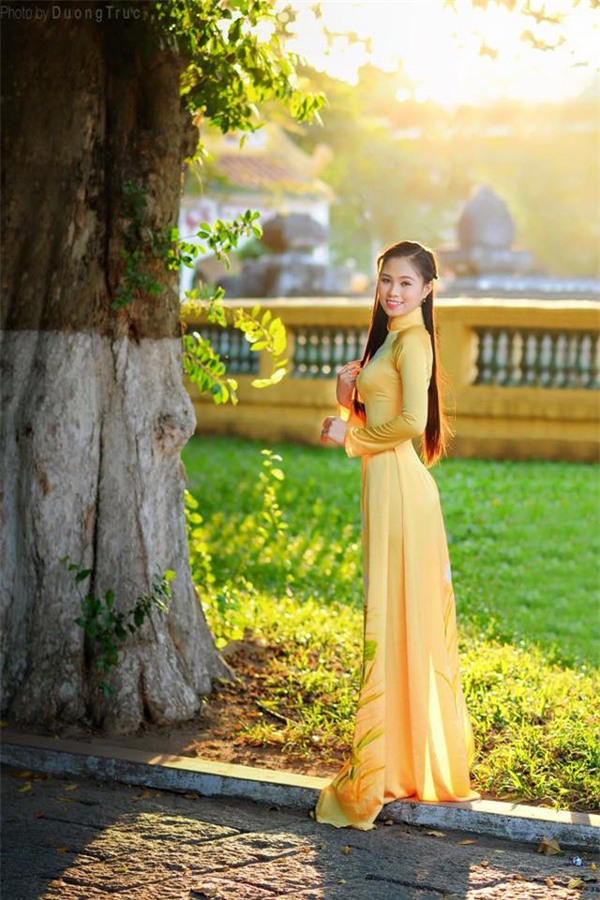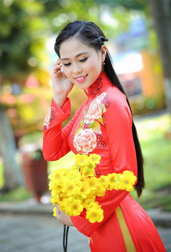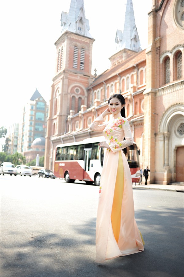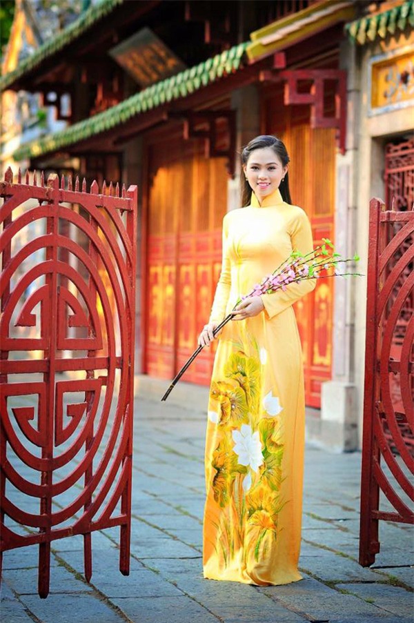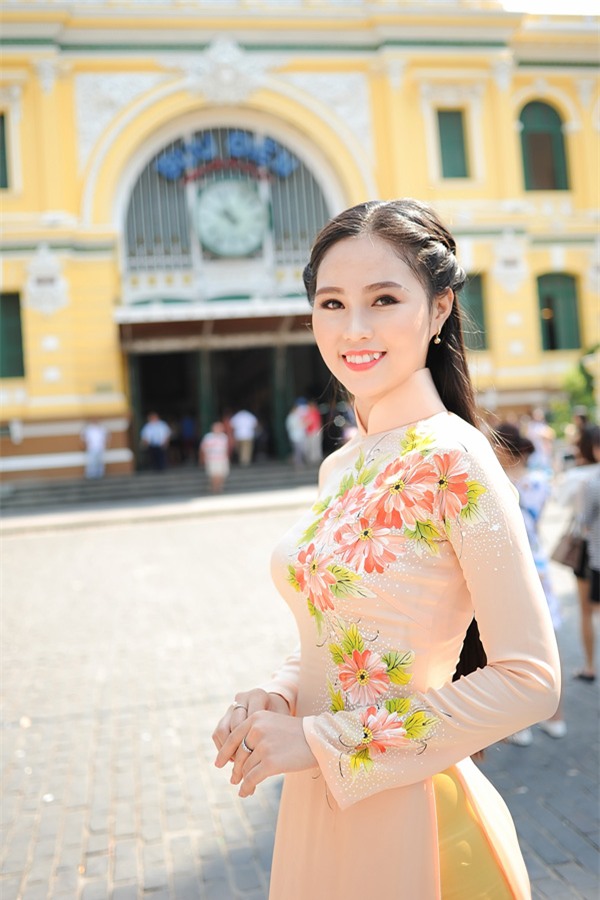 Và vì yêu thích áo dài, nên giờ đây, khi lựa chọn trang phục để dẫn chương trình, tà áo truyền thống thường được mình ưu tiên hơn cả. Mình tự thiết kế họa tiết, sau đó đem đi may và vẽ lên đó. Mình luôn muốn truyền bá hình ảnh áo dài Việt Nam”.