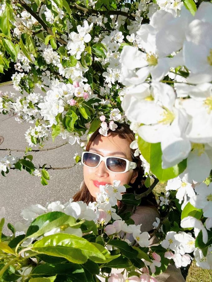 Chia sẻ trên Ngôi sao, Uyển Nhi cho biết nơi đây cảnh sắc lãng mạn, khoảng từ tháng 4 đến tháng 8, các loại hoa đồng loạt nở rộ, đặc biệt là hoa táo. Buổi sáng, cô dậy đi làm khi những búp hoa táo vừa mới hé. Chiều về, những đóa hoa đã khoe sắc rực rỡ dưới tiết trời 20 độ C.